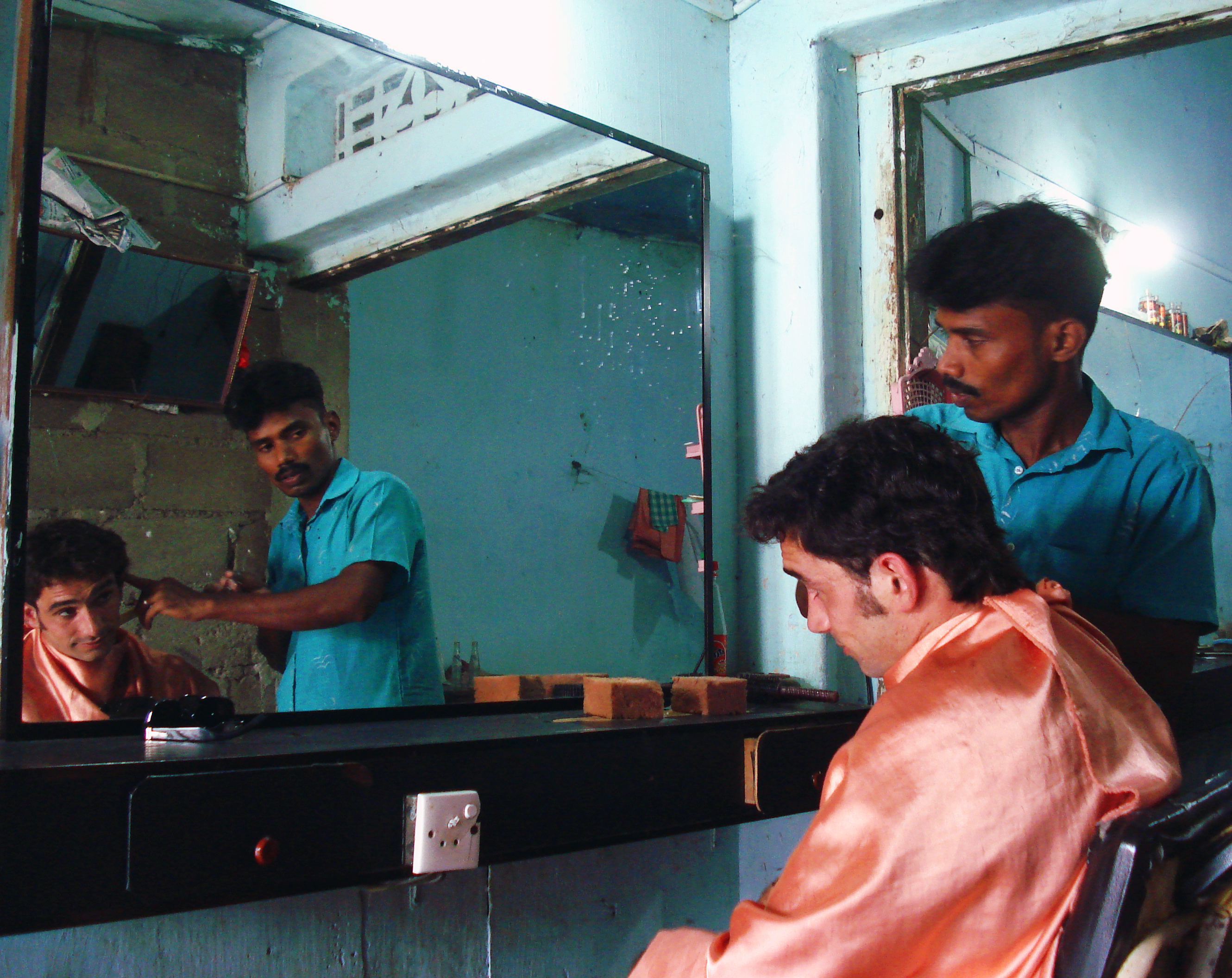 The barber didn't speak English and Sean didn't speak Sinhala or Tamil.