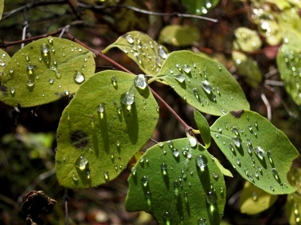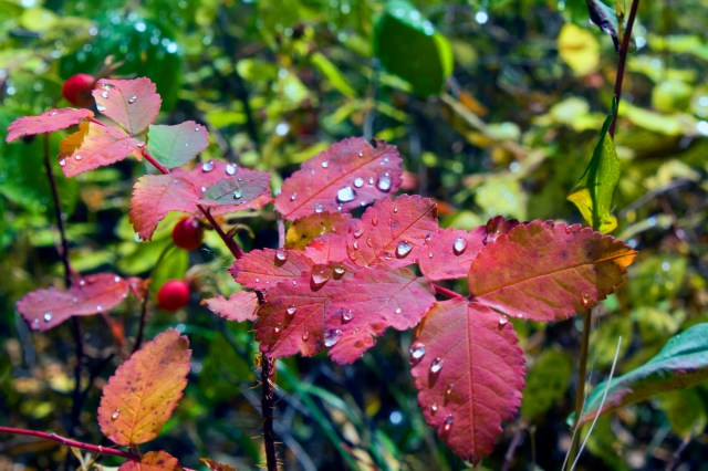 I shifted my gaze upwards from the red leaves covered in dew to the tree in question. One section had been whittled away. A deep red, smooth scar had replaced the bark.