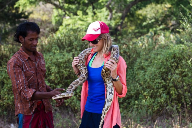 Then I thought about the time in Panama with the giant snake (over ten feet long) in the rafters above my bed that had recently eaten a dog or child. I was wondering how well fed this Sri Lankan snake was. Maybe he was hungry?