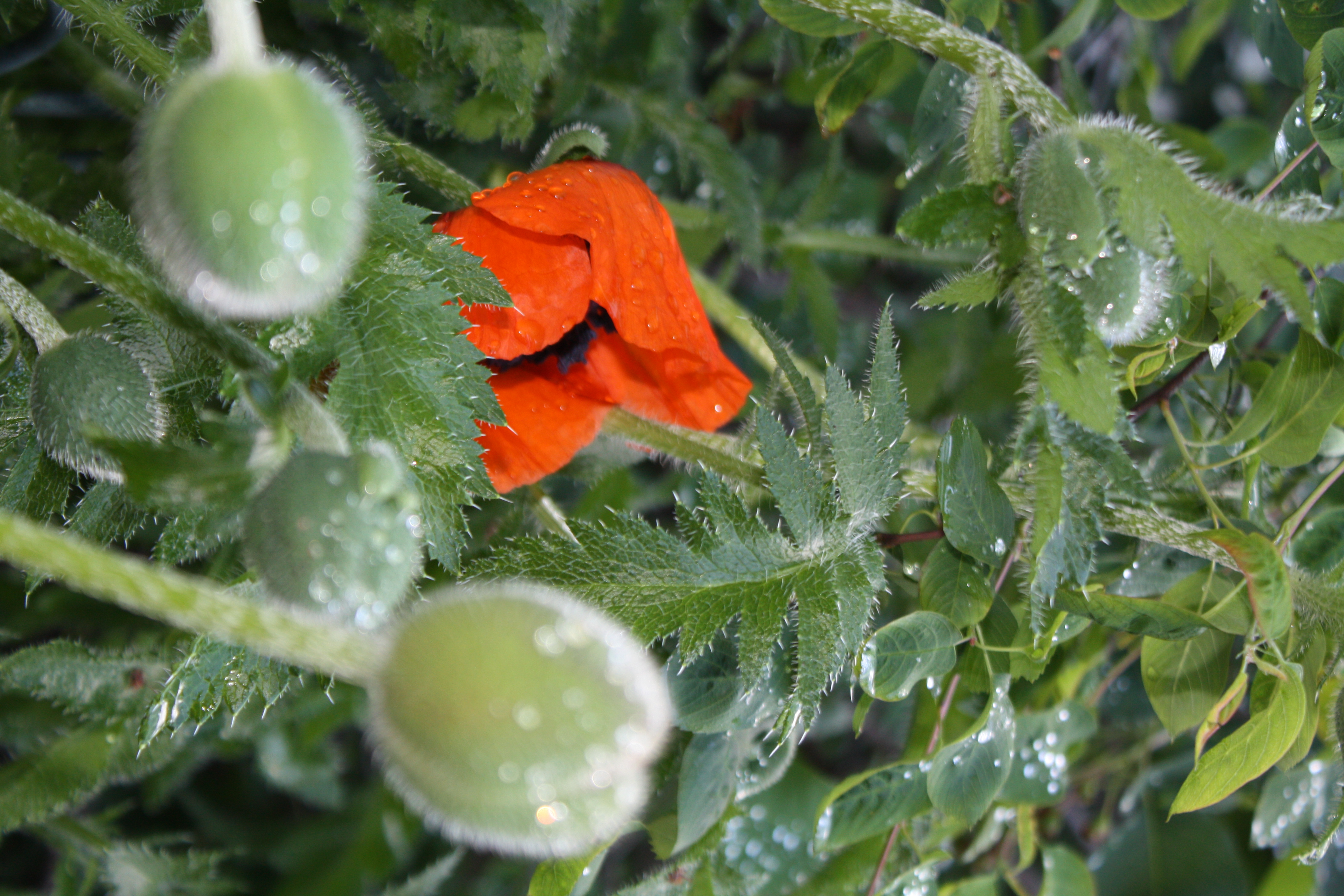 I shifted my gaze upwards from the red leaves covered in dew to the tree in question. One section had been whittled away. A deep red, smooth scar had replaced the bark.